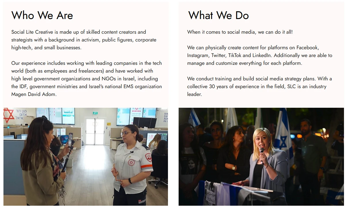An authentic user followed by @IsraelPersia, among other official Zionist entity accounts, is Emily Schrader, CEO of digital marketing agency Social Lite Creative. At the time of Social Forensics’ investigation, her company’s website openly boasted of working with “high level government organizations and NGOs in Israel, including the IDF.” The analytics firm’s probe concluded Schrader’s follower count “is inflated and her tweets are artificially amplified by the same inauthentic accounts” calling for insurrection in Iran, including monarchist bots.