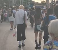 In addition, this woman here, captured roaming the market in Chatuchak Park, exemplifies two Chinese fashion tendencies simultaneously: ankle-length denim skirts like Asian Mennonites or something and ostentatious, wide-brimmed fishing hats.