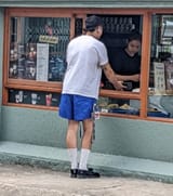 (Note, once again, the pairing of black socks with white shoes in the first photo and, conversely, the pairing of white socks with black sandals in the second.)